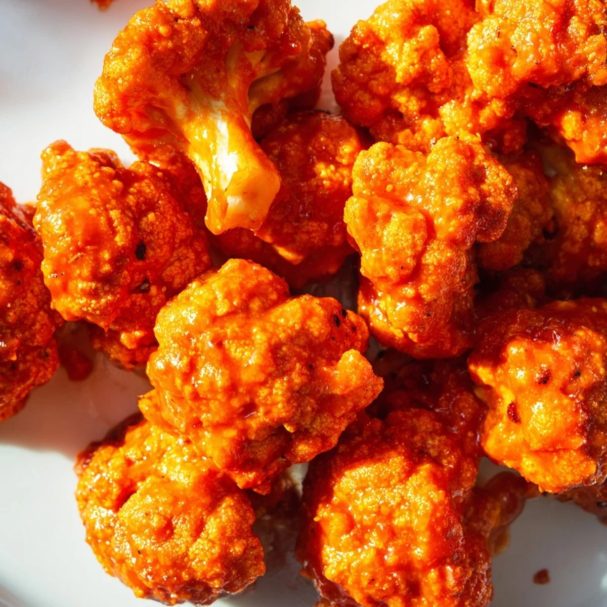 These crispy cauliflower florets deliver all the bold flavors of classic buffalo wings without the meat. Each bite-sized piece gets a light seasoned batter, baked until golden, then tossed in a tangy buttery hot sauce glaze. The result is perfectly crispy on the outside, tender inside, with just the right amount of heat. Serve with cool celery sticks and your favorite ranch or blue cheese dipping sauce for the ultimate game day appetizer or satisfying snack.