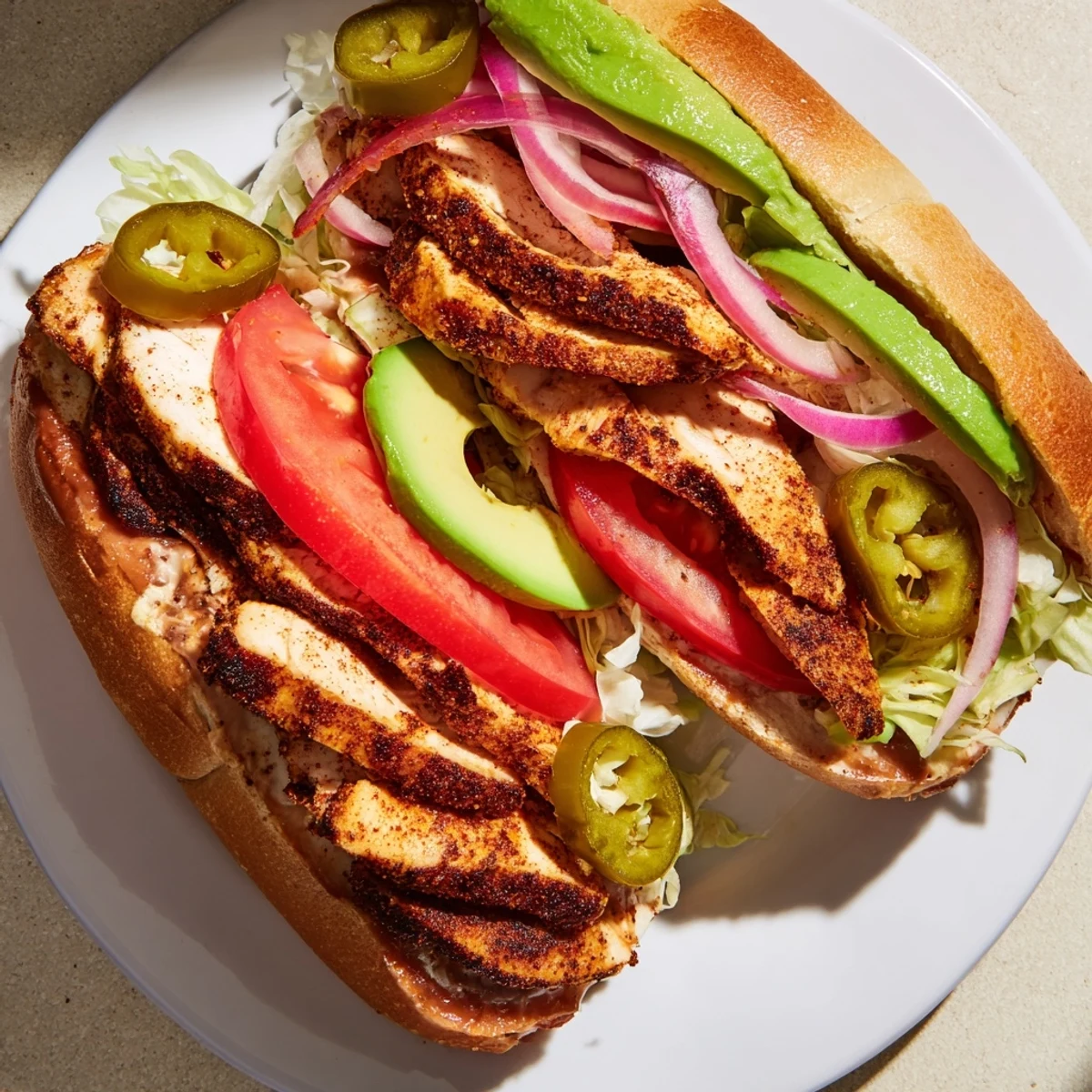 This satisfying Mexican sandwich features spice-marinated chicken grilled to perfection, then layered with creamy avocado, crisp vegetables, and tangy pickled jalapeños. The bolillo roll gets a spread of refried beans and mayonnaise, adding authentic flavor and helping hold all the generous fillings together. Each bite delivers smoky, tangy, and fresh elements that make tortas a beloved street food classic.