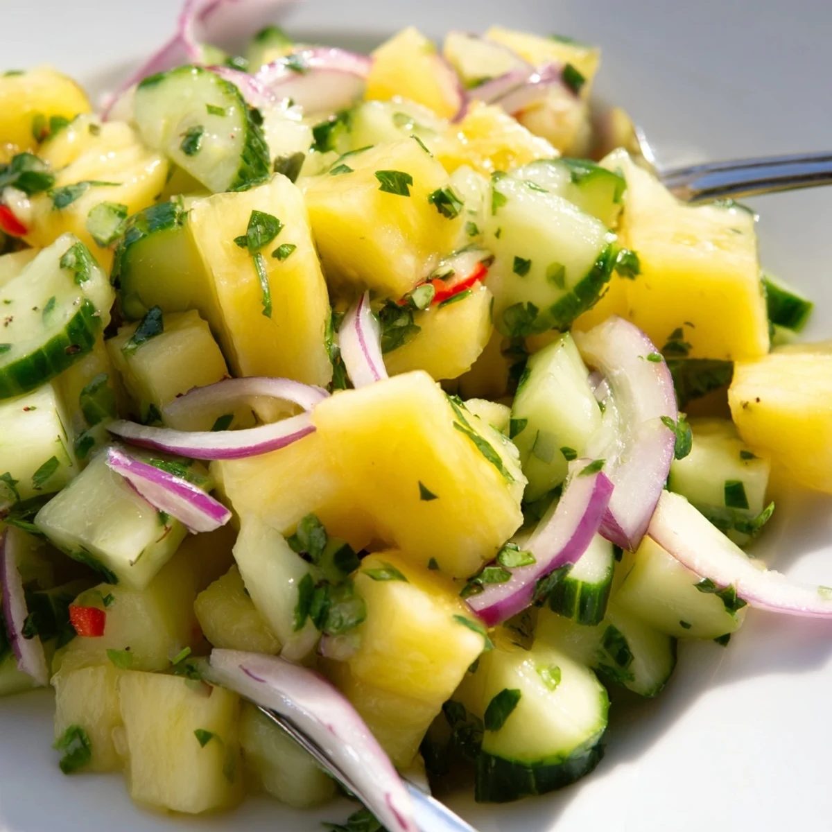 You know it’s summer in my kitchen when the counters are scattered with emerald cucumbers and the scent of ripe pineapple seems to sneak its way into every corner. I once discovered this salad sort of by accident, while trying to clear out the fridge before a weekend barbecue. The mix of juicy pineapple and cool cucumber surprised me—the crunch, the sweet, the hit of herbs bursting with every bite. Ever since, it’s the dish I crave when the sun’s out and I want something fresh that doesn’t need the stove.